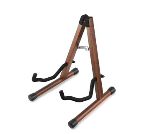 The Donner guitar stand is an A-frame stand made of acacia wood, which makes it stronger and more durable. The high-quality wood used also helps your guitar stand out.