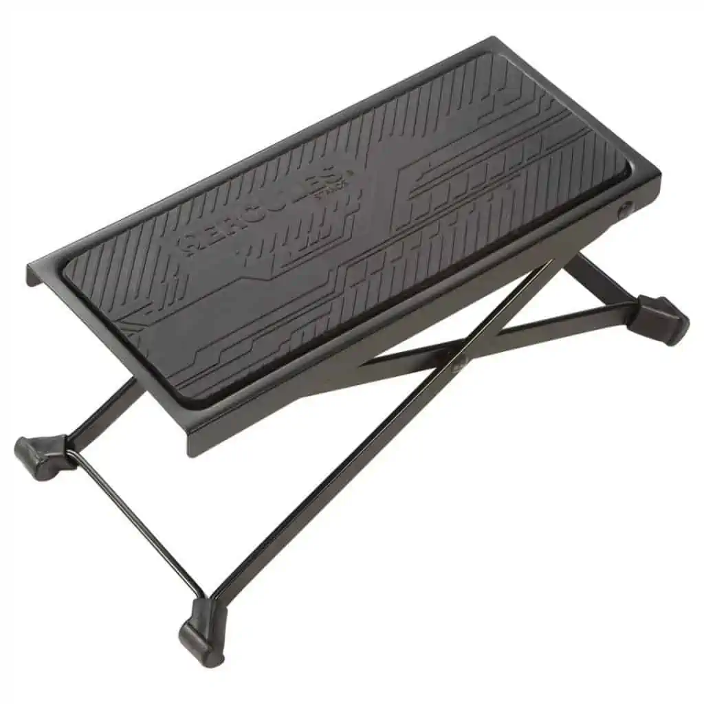 A footstool is a miniature platform that you rest one of your feet on as you play.